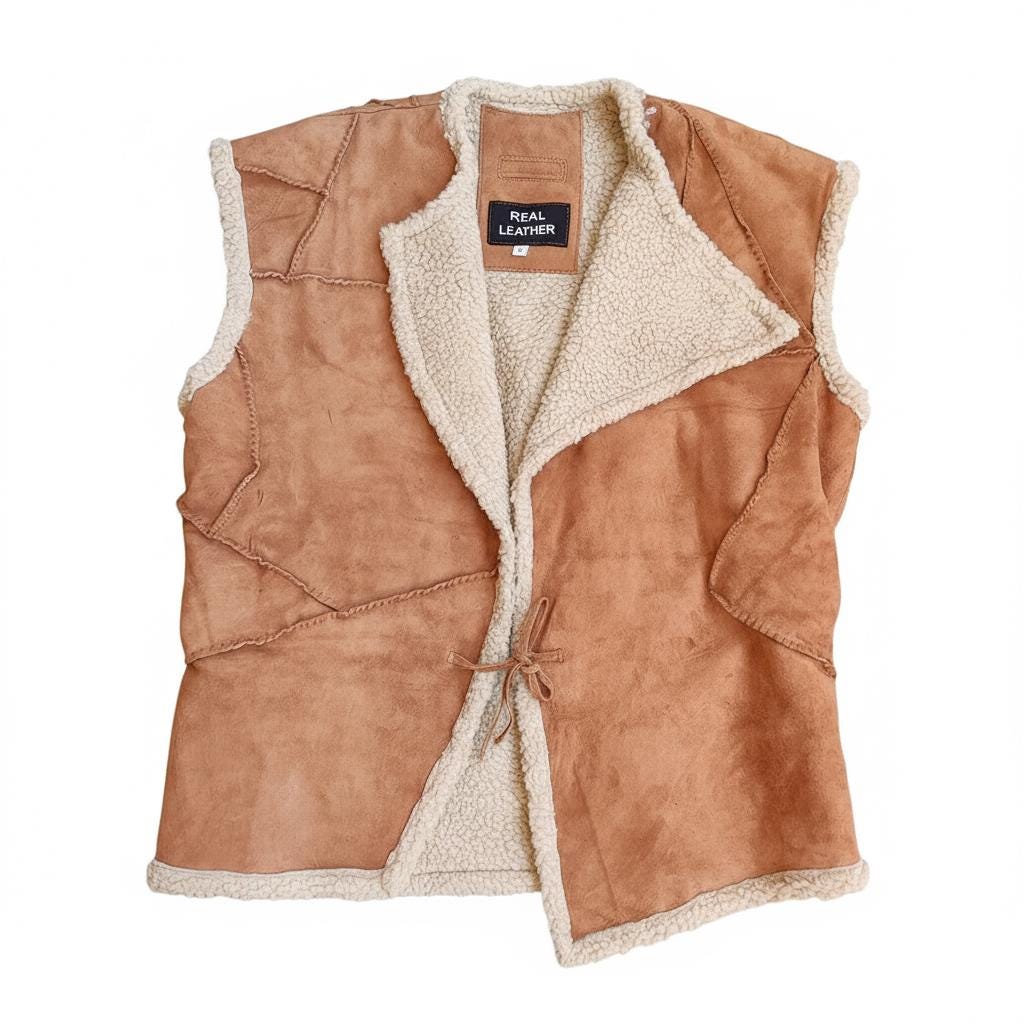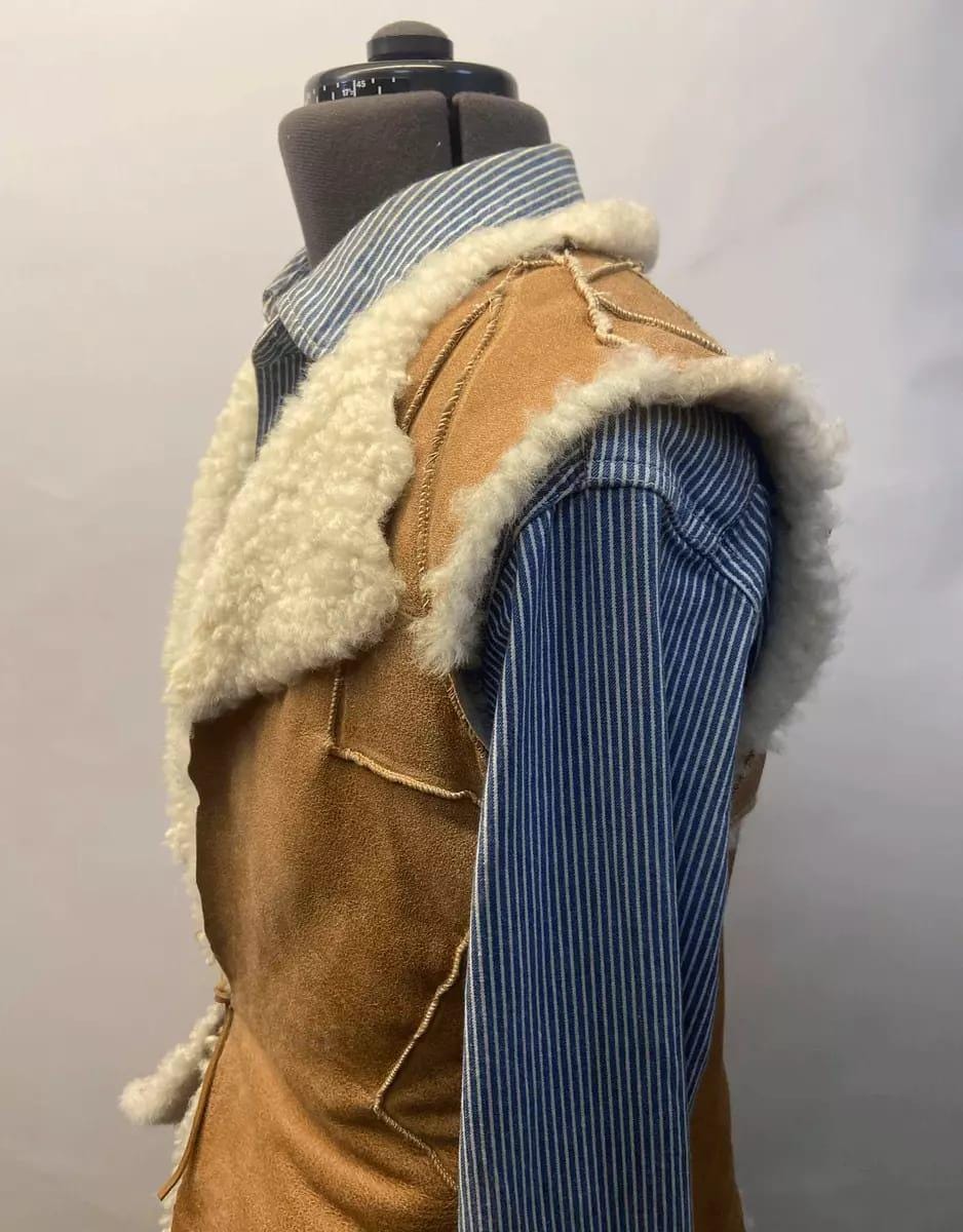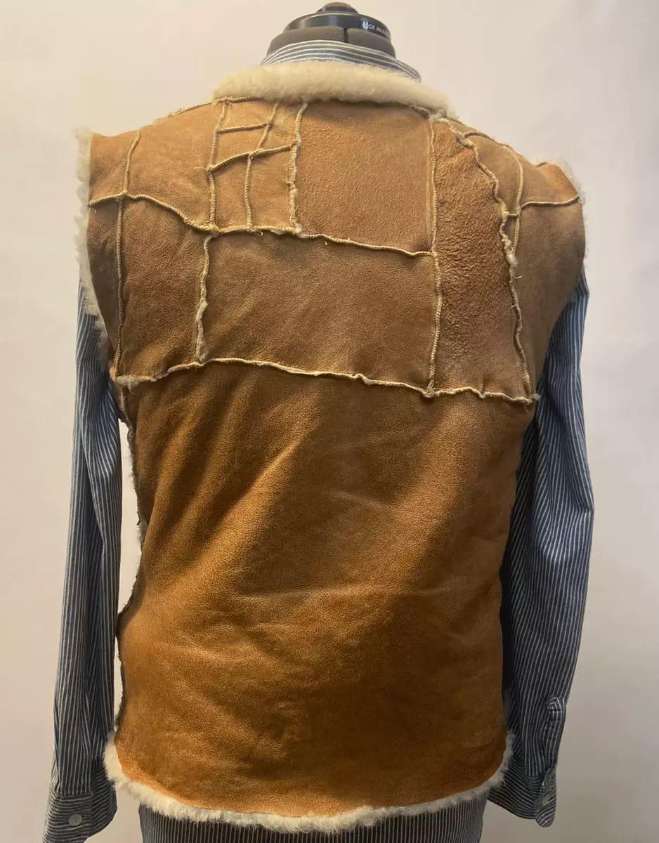 Handmade Clint Eastwood Inspired The Man with No Name Costume Shearling Brown Suede Leather Costume Cowboy Vest for Men and Women