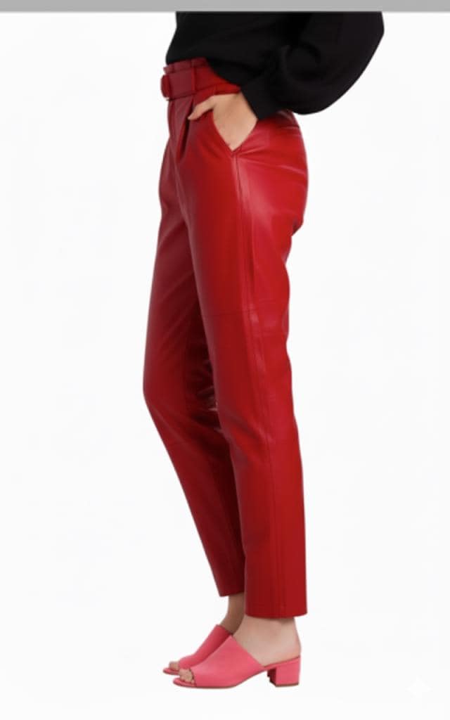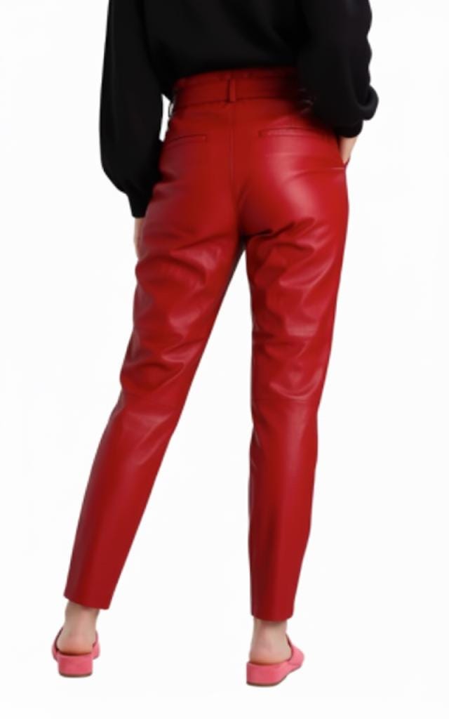 Introducing our stunning Red Leather Pants for women, a fusion of style and craftsmanship that sets a new standard for your fashion journey. Handcrafted from 100% Lambskin Leather, these pants epitomize superior quality and impeccable tailoring, ensuring a garment that's as luxurious as it is enduringly chic.