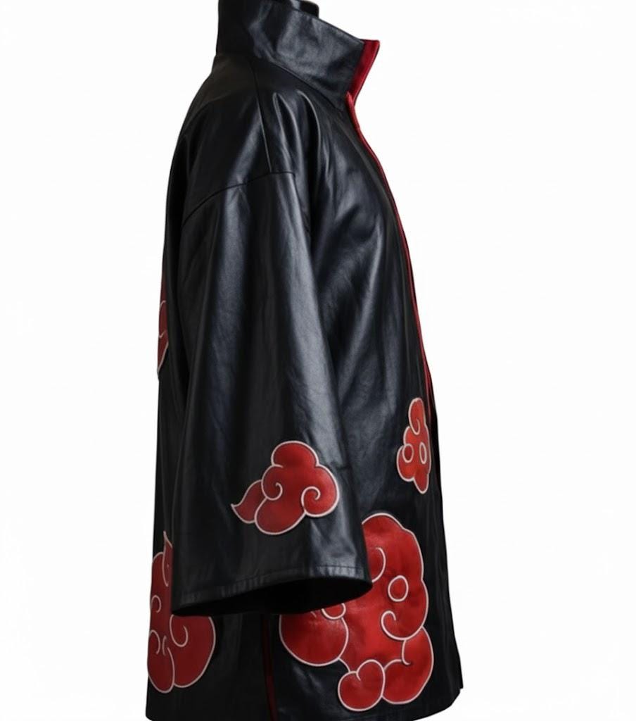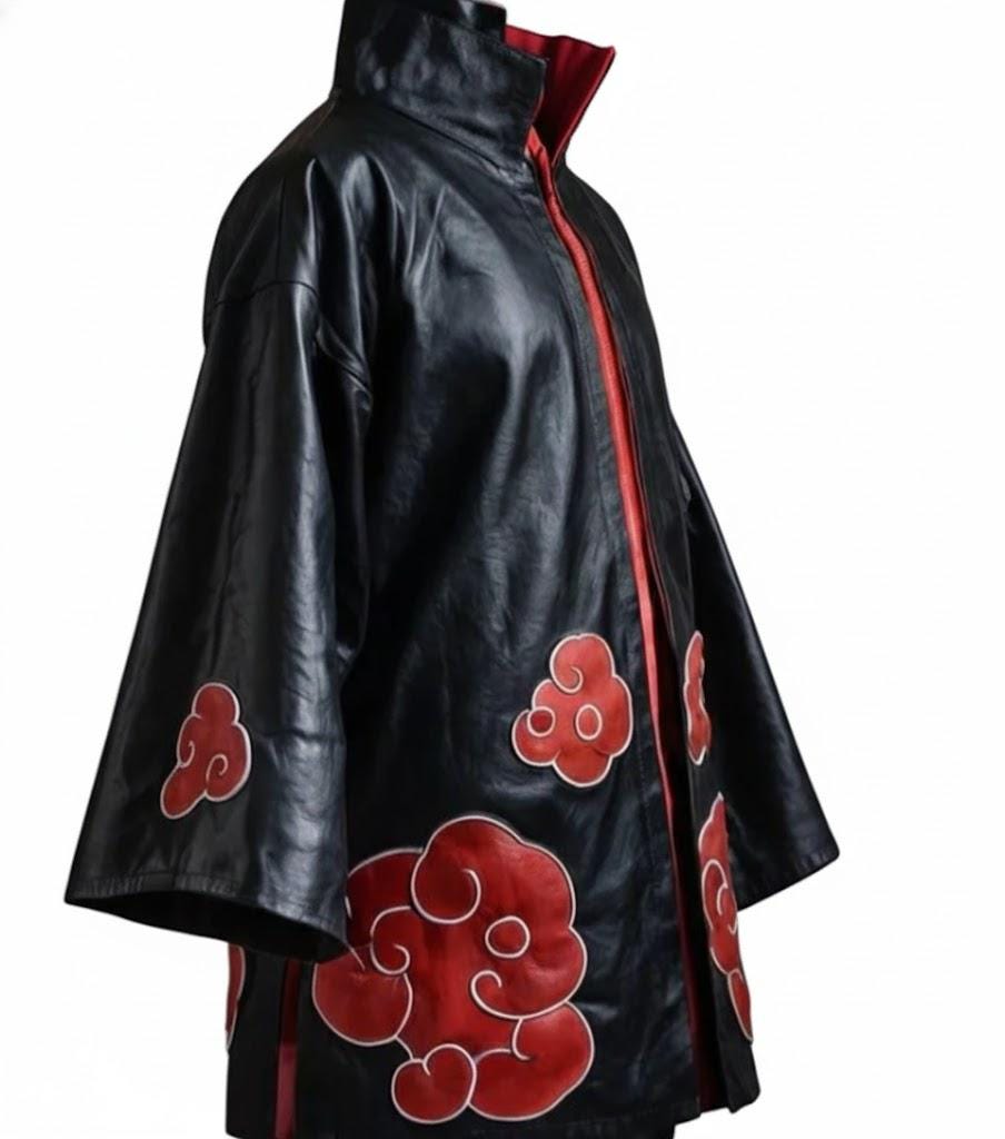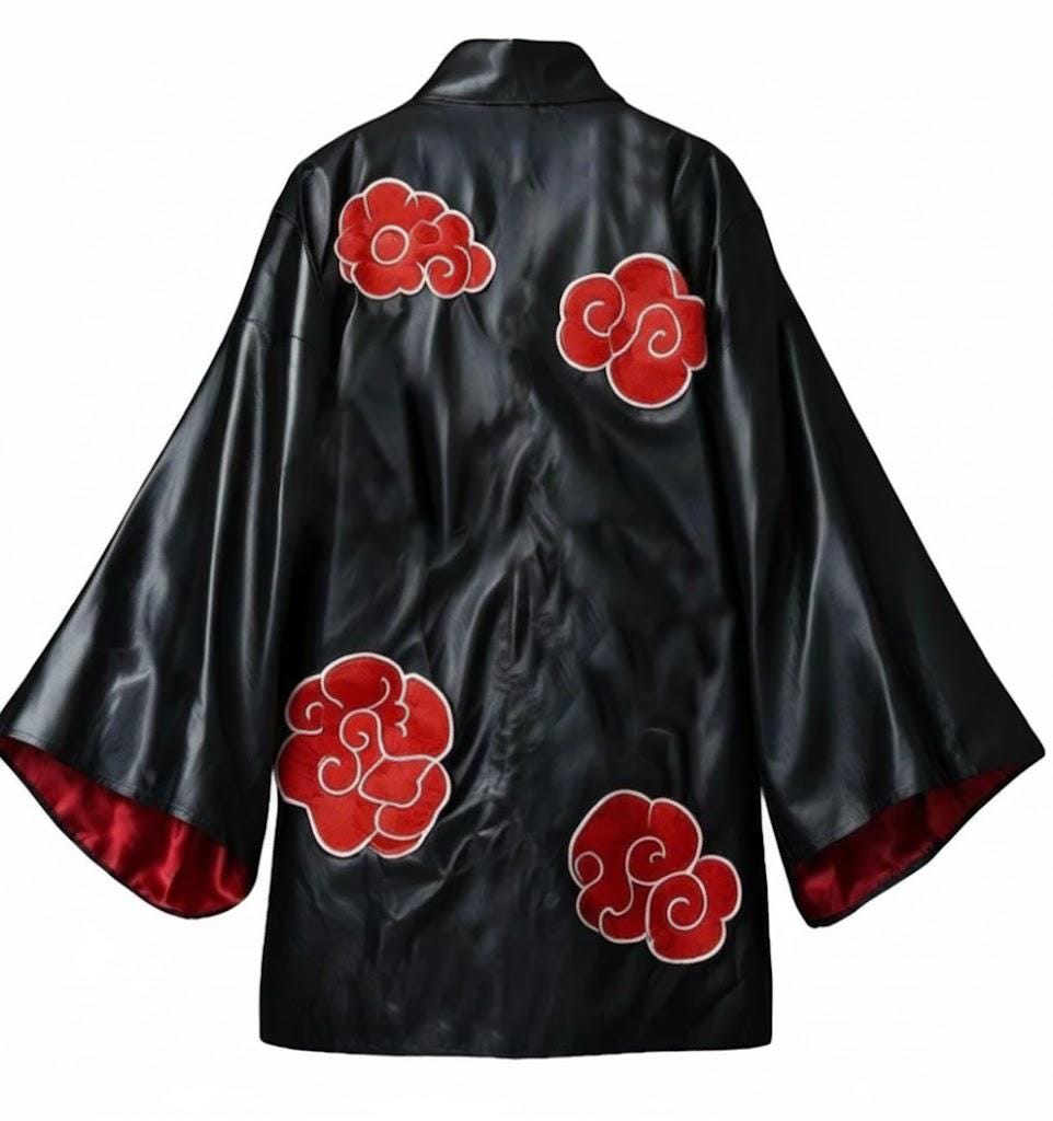 Black anime-inspired cosplay cloak with red cloud design